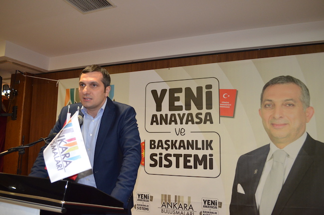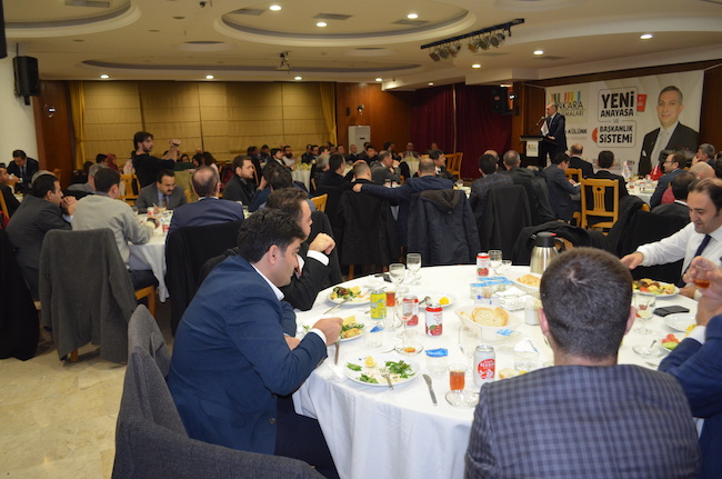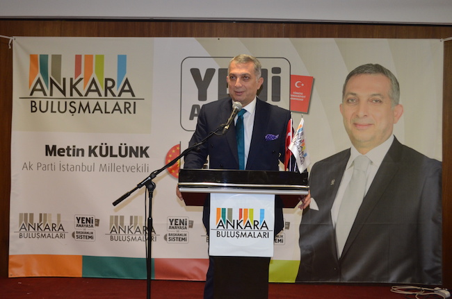 Metin Külünk’ün dünkü konuşmanın ana teması Başkanlık sistemiydi. Başkanlık sisteminin Türkiye’nin geleceği hatta Türkiye’nin varlığını ilgilendiren bir konu olarak görerek bir an önce yeni Türkiye için Başkanlık sistemine geçilmesi gerektiğinin altını çizdi.