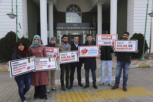 " Toplumumuz üzerinde gerçekleştirilmek istenen ahlak dejenerasyonu sınırlarını her geçen gün daha arttırmaktadır. Özel bir TV’de yayınlanan ve tarihi gerçeklerden tamamen uzak senaristlerin dünyevi fantezilerini kaleme döktükleri “Muhteşem Yüzyıl Kösem Sultan adlı sinsi proje, her ne kadar "bu sadece bir kurgu kimseyi hedef almıyoruz" söylemi ile savunulsa da koskoca Cihan imparatorluğu Osmanlı Devletini böylesi ahlaksız durumda film etmeleri kabul edilir bir durum değildir. Bir diğer özel TV kanalında yayınlanan “Benim Stilim adlı program kişilerin kendini pazarladığı ekran başındaki genç kızlarımızı zehirleyen ve özendiren mutlaka önü alınması gereken bir garabet. Evlilik otoritesinin ayaklar altına alındığı böylesine kutsal bir bağın reyting uğruna katledildiği, RTÜK’ün müsaadesiyle yayınlanan “Kısmetse Olur” adlı yarışma programı da toplum dinamiklerini yıkmaya yönelik en büyük projelerden biri olarak görüyoruz. Çocuklar için oluşturulan TV kanalarında da amacı sadece tüketim olan yeni bir nesil yetiştirmek olan programlarda kınadıklarımız arasında. Tüm bunların yanında evliliğin gereksiz bir kavram olduğu, gündelik ilişkilere özendiren, erkek ve kadın ilişkilerinin çarpıtıldığı, ahlak otoritesinin yok olduğu, şiddetin özendirildiği ve daha onlarca zararını sayamadığımız kötülükler ekranlarda başıboş hareket ederek adeta bir zehir gibi geleceğimizin damarlarına işlenmekte."